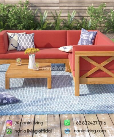 Trier Teak Guest Sofa Chair Set Red Cushioned Letter U
